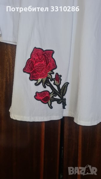 Дамска блуза с паднали рамене и бродерия рр м