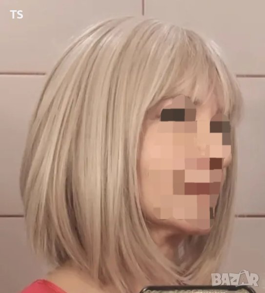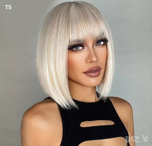 Уникална къса руса перука с бретон, изработена от висококачествен синтетичен косъм. Разполага с вътрешно пришита специална шапчица от дишаща материя за максимален комфорт.Широчината се регулира лесно със специални ластици, които не позволяват разместването й.Дължина - 28см.