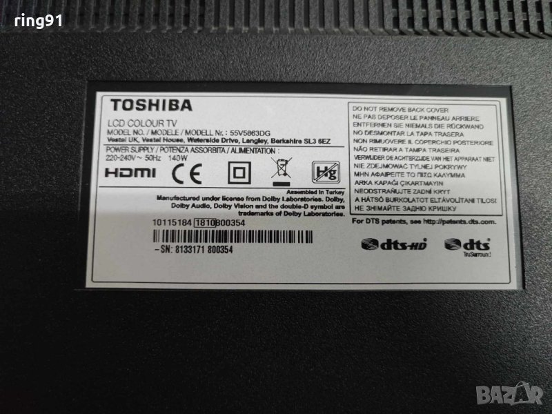 Телевизор Toshiba 55V5863DG На части , снимка 1 - Части и Платки - 43422310 Телевизор Toshiba 55V5863DG На части , снимка 2 - Части и Платки - 43422310 Телевизор Toshiba 55V5863DG На части , снимка 3 - Части и Платки - 43422310 Телевизор Toshiba 55V5863DG На части , снимка 4 - Части и Платки - 43422310 Телевизор Toshiba 55V5863DG На части , снимка 5 - Части и Платки - 43422310 1/5
