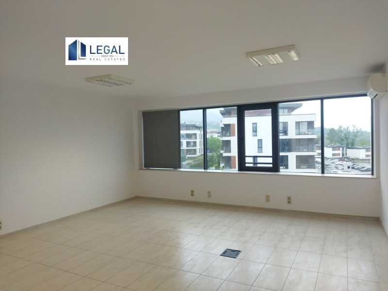 LEGAL REAL ESTATES представя ЛУКСОЗЕН ОФИС, намиращ се в Бизнес сграда в кв. Драгалевци в непосредствена близост до Фантастико с лице и директен достъп от Околовръстен път . Намира се на 1-ти етаж в луксозна и представителна офис сграда с рецепция, контролиран достъп, жива охрана и видеонаблюдение. Площа на офиса е 47 кв.м. и представлява еднопространсвено помещение с правилна форма и окабеляване. Отоплението и климатизацията са с термопомпа, което прави разходите изключително ниски. На всеки етаж има обособен кухненски бокс и дамска и мъжка тоалетна, които се ползват от офисите на етажа. Наемната цена е без ДДС .