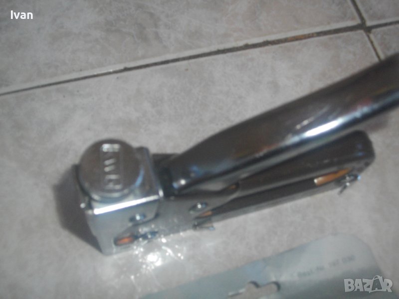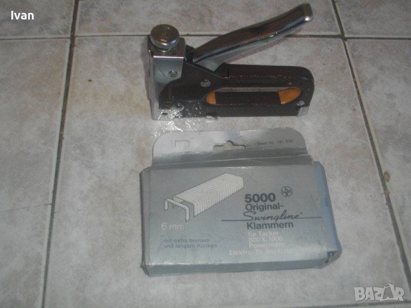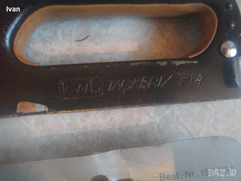 ОПИСАНИЕ на ръчен такер - 159 лв. Професионален модел старо неемско качество. Почти нов , в отлично техническо/работно състояние. Силен и мощен удар с регулация. Класически модел от 70-те години на 20-ти век. Марка и модел - KWB T 14 - Tackerix Professional Staple Gun Tacker T14 Industrie. Произовдство на инструмента - Germany GmbH. За скоби размер 4-14 мм Type 53 универсални. Такера е метален изцяло с размери 155 х 130 х 25 мм, с регулация отгоре силата на удар. Масивен корпус, от старото качество. Към такера има пълна голяма кутия франска с 5000 броя скоби за такера - фреенски оригинални - марка Original Swingline Klammer - Made in FRNCE . Всички скоби са 1 раазмер - 6 мм ширина/12 мм дължина. Тегло на такера и скобите - 1,5 кг. Цена обща 199 лв.
