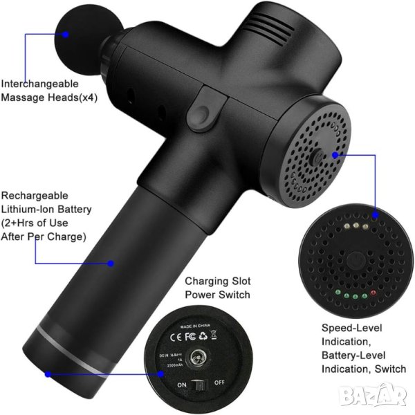 С 4 различни приставки за дълбокотъкънен масаж.