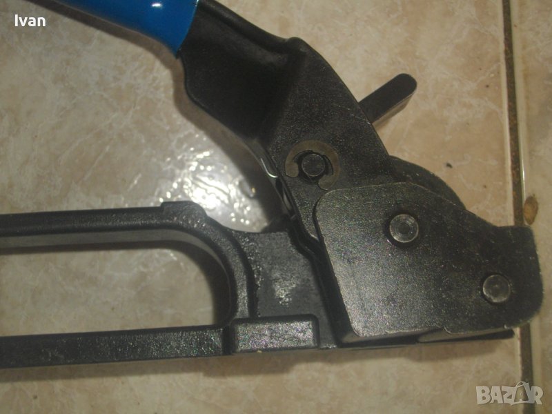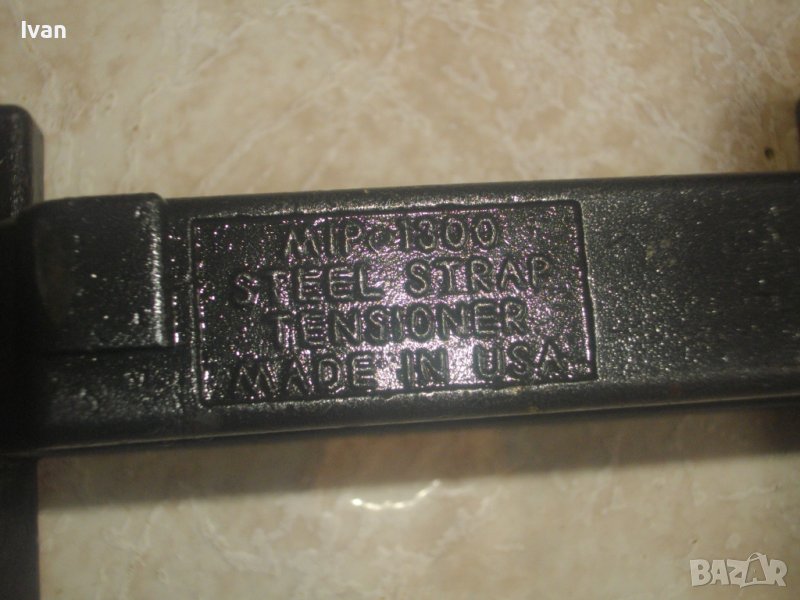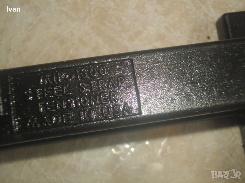 ОПИСАНИЕ на ръчен чембер за метални ленти. Инструмента е оригинално САЩ произовдство, маркирано на него. Висок клас, промишлен индустриален. Марка и модел / маркировки - MIP 1300 Steel Strap Tensioner - Made in USA. За проверка на модела е налична информация в нета - цената на чембер от модела нов е около 360 долара. За метални ленти 18-25 мм.Дължина на чембера 240 мм, дръжка дължина 30 см, с ПВЦ вложка, ширина на чембера - 90 мм. Изцяло от масивна закалена инструментална стомана. Тресчотъчен механизъм на опъване на лентата. Тегло на чембера - 2,5 кг. Почти нов, трудно различим от нов, в отлично изправно техническо и работно състояние. Описание на чембера от англоезични линкове: