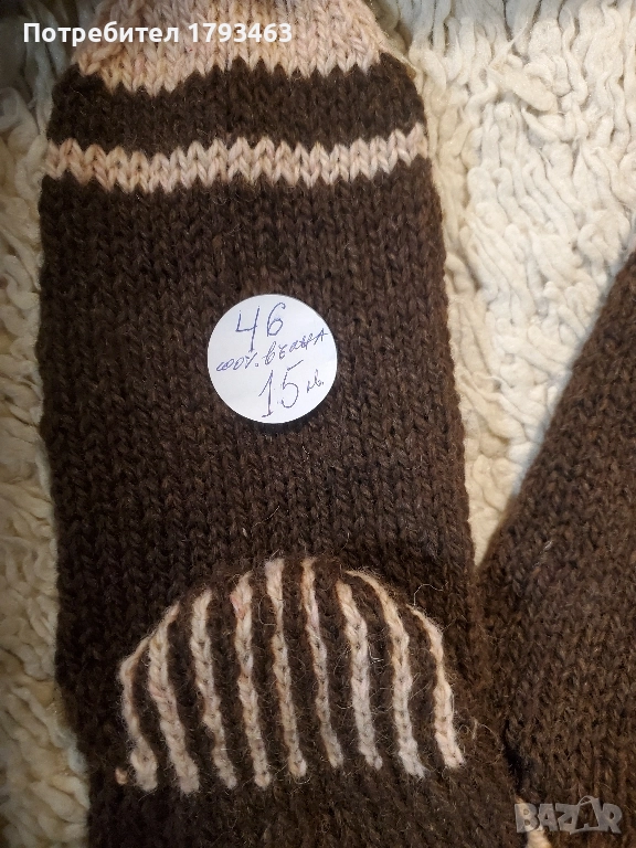 Ръчно плетени мъжки чорапи от вълна, размер 45 → Обява 43426772