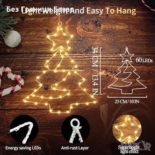 - Коледни светлини за прозорец: 3 броя, 180 LED светлини.