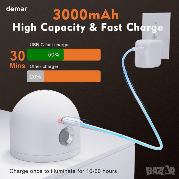LED стенна лампа, предлагаща три метода на управление: дистанционно, сензорно управление и усъвършенствана функция за гласово управление за работа със свободни ръце. Той разполага с дълготрайна акумулаторна батерия от 3000 mAh, напълно заредена за 2 часа с помощта на USB Type-C кабел, осигуряваща 10 часа осветление с висока яркост или 60 часа при по-ниска настройка. Разглобяемият и въртящ се дизайн на светлината я трансформира във фенерче или преносима светлина, с магнитна основа за въртене на 360°, идеална за различни нужди от осветление. Оборудван с усъвършенствана RGBCW технология, избирайте между 3 цветови температури, 32 RGB цвята и 5 нива на яркост, за да създадете идеалната атмосфера във всяка обстановка. Освен това светлината предлага режим на синхронизиране на музика, пулсиращ с ритъма на песните ви, и функции за персонализиране на времето с таймери за автоматично изключване за 30 минути, 1 час или 3 часа, издигайки светлинното ви изживяване до ново ниво на удобство и многофункционалност.