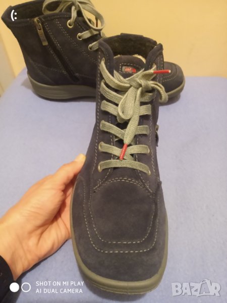 Ботите са обувани само за проба,нови са.Цвета е син.Естествен велур са.Лесно и удобно обуване.С мембрана coretex са,която предпазва от влага и задържа топлината в обувките.Добре подплатени са.Марката е скъпа и много качествена.По етикет са номер 38,5 но са леко оголемени към 39 с дължина на стелката 26см.Цена 120лв.
