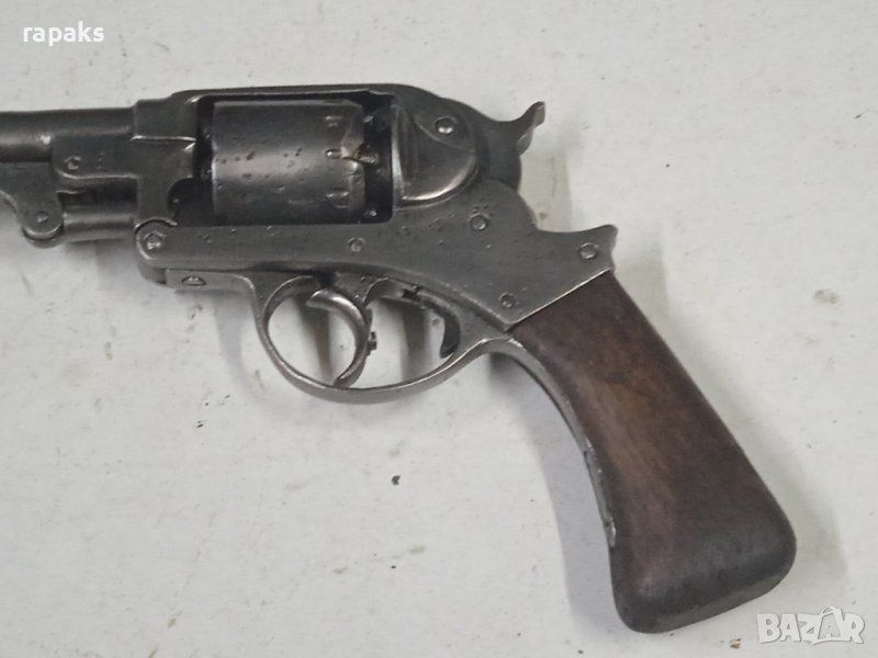 револвер Стар. Испанско производство, поръчка за гражданската война в Америка. Отлично техническо състовние. Колекционерски модел *пистолет. Работи чудесно. За съжаление след реставрацията надписите са почти изчезнали, но пък и цената е съобразена и наполовина от реалната. Старинно колекционерско оръжие подходящо за възстановки, декорация, колекция и украса. Без нужда от разрешителни, защото е освободен от отчет от закона Продавам и други оръжия на свободен режим, за това разгледайте обявите ми и се наслаждавайте.