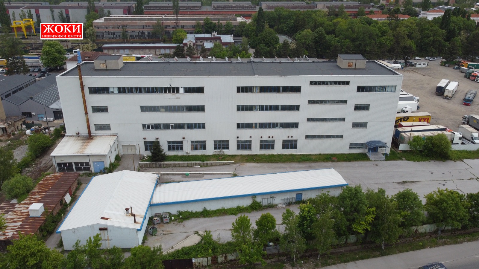 Агенция ЖОКИ отдава под наем масивна, четириетажна промишлена сграда в гр. Перник, кв. Изток промишлена зона, РЗП 6224 кв. м., състояща се от две стълбищни клетки с четири асансьора /два пътничести и два товарни/, големи работни помещения, офиси и санитарни възли. Партерният етаж е с площ 1556 кв. м. и височина 6 метра, с кран с товароподемност 1 тон и с допълнителен товарен вход. Останалите 3 етажа са със същата площ 1556 кв. м. и с височина 4.80 метра. Сградата е ремонтирана през 2007 година, с външна изолация. Захранена е от трафопост с параметри 20/0.4/0.231кV, 800 KVA с кабелно захранване с кабели 20 кV., отделни партиди на етажите. Налични са питеен и промишлен водопровод, пречиствателна станция и канализация. Възможност за присъединяване към газопреносна мрежа. Сградата е разположена в собствен парцел с площ от 7261 кв. м., асфалтиран, с контролиран достъп и с изградена товарна рампа и паркинг. Имота е с отлична локация, с добър ТИР достъп. Има възможност за отдаване под наем на цялата сграда на цена по договаряне или на отделни етажи на цени както следва: