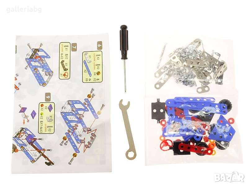 Комплектът за самостоятелно сглобяване развива пространственото възприятие и моториката на ръцете. Комплектът включва 140 елемента. Комплектът е изработен от пластмаса и метал.