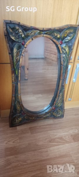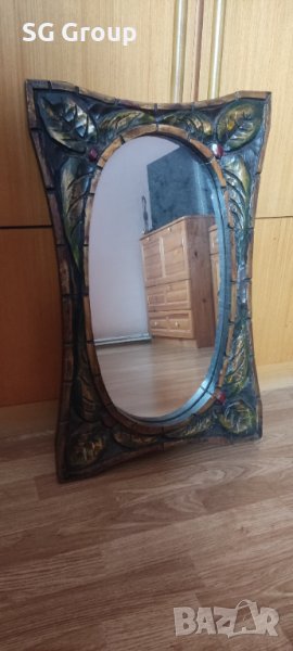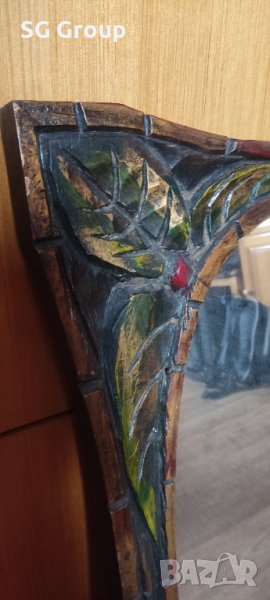 Огледалото е окрасено майсторски с изцяло ръчно направена и цялостно гравирана рамка.