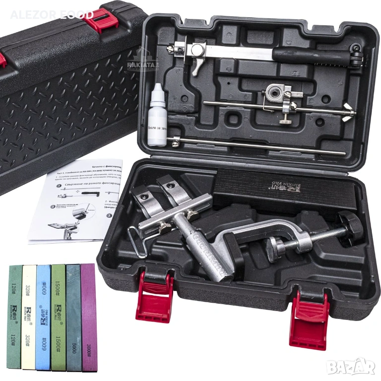 Професионално точило, което може да се използва с диамантени или синтетични абразиви. Абразивните плочки могат да бъдат с различни размери, благодарение на възможността за различни видове захващания. Разстоянието между двете рамена може да се регулира или при по-малки остриета да се остави само едното рамо за захващане на ножа.