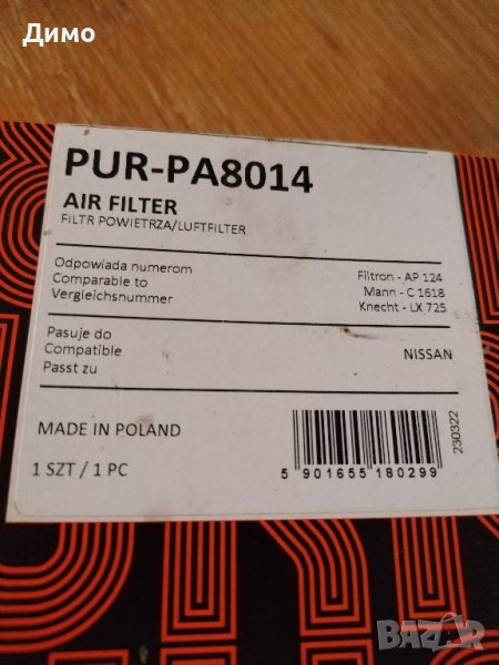 Въздушен филтър нисан микра 1,2 Бензин, снимка 1 - Аксесоари и консумативи - 43438754 Въздушен филтър нисан микра 1,2 Бензин, снимка 2 - Аксесоари и консумативи - 43438754 1/2