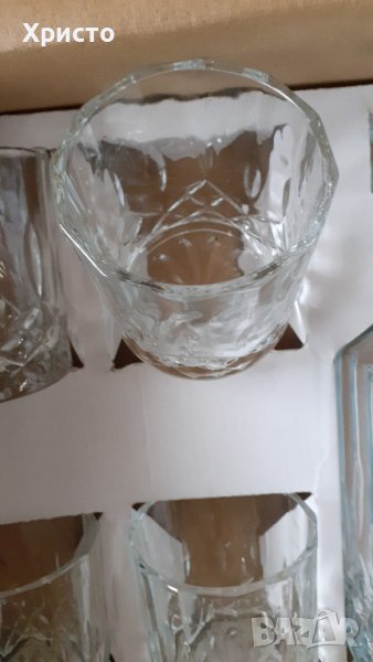 Продавам луксозен стъклен комплект за уиски и напитки от 4 чаши (230 ml) и гарафа (900 ml). Насладете се на някои от най-добрите напитки и ликьори със стил с тази изискана, луксозна чаша. Не наливайте направо от бутилката, а съхранявайте любимата си напитка в красиво декорираната гарафа. Ще изглежда много по-ексклузивно. Гарафата е висока 23 см, с основа 8,5х8,5 см, чашата е висока 8,2 см с елегантен многоъгълен отвор с диаметър ф 7,2 см. Общо тегло с кутията 1,9 кг.
