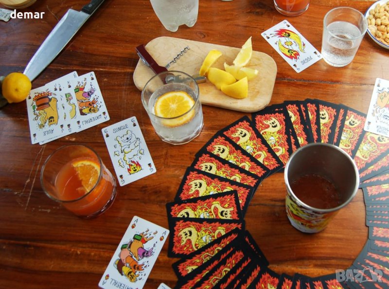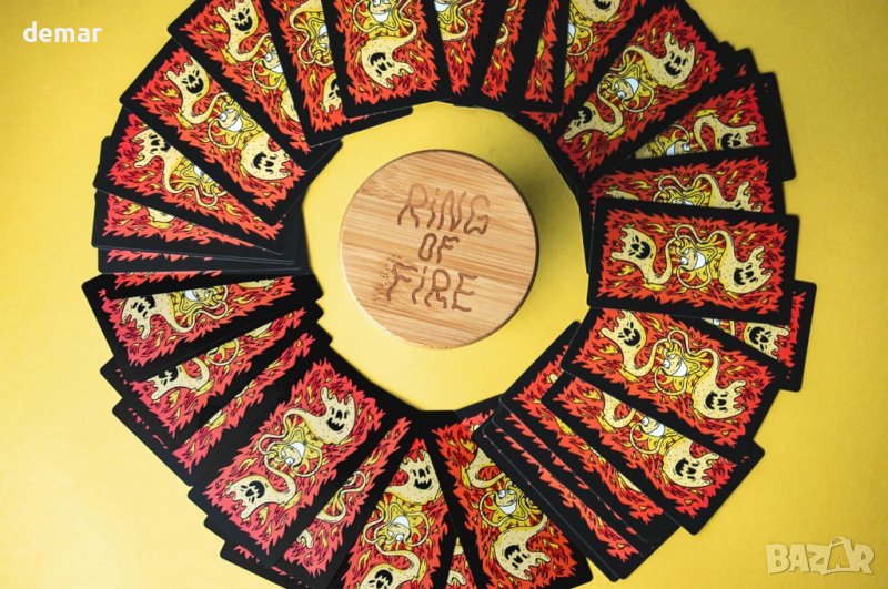 „Огненият пръстен“, проектирана от всепризнатата латвийска илюстраторка Inga Ziemele, е върховна парти игра с карти, която внася огнен обрат във вашите социални събирания. Известна също като „Купата на кралете“, тази вълнуваща игра за пиене, известна със своя динамичен и жив дизайн на карти, включва разпръскване на карти около централна чаша, като всяка карта диктува конкретно действие или правило. Играчите теглят карти и следват инструкциите, като играта се засилва, когато се изтеглят Попове, като кулминацията е в това, че играчът, който изтегли четвъртия Поп, изпива сместа от централната чаша. Играта включва 62 карти, включващи 5 уникални „Огнени карти“, което я прави лесна за научаване, визуално привлекателна и гарантирано ще продължи забавлението през цялата нощ. Перфектен за партита, Ring of Fire обещава вълнуващо изживяване, въпреки че е важно да не забравяте да пиете отговорно.