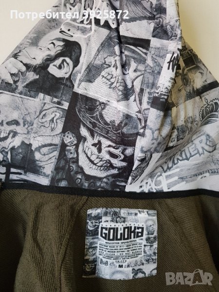 С щампа череп на гърба и принт на вътрешна част на качулката.