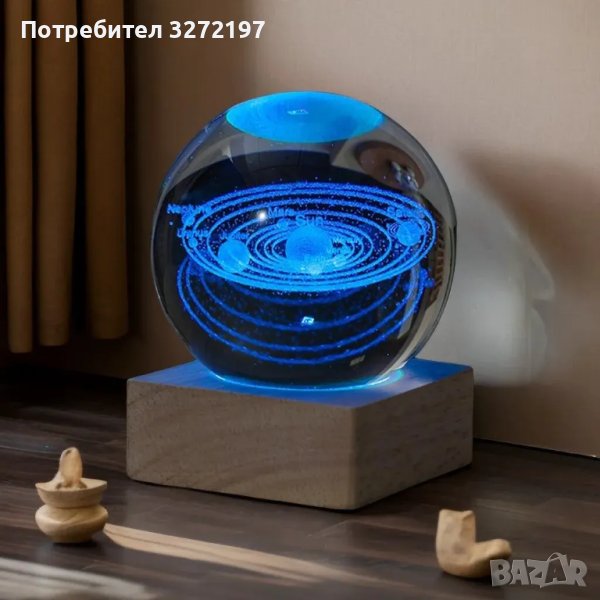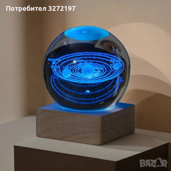 LED Светеща кристална топка/лампа,3D сензорна-Вселена,Планетарна Галактика,Слънце