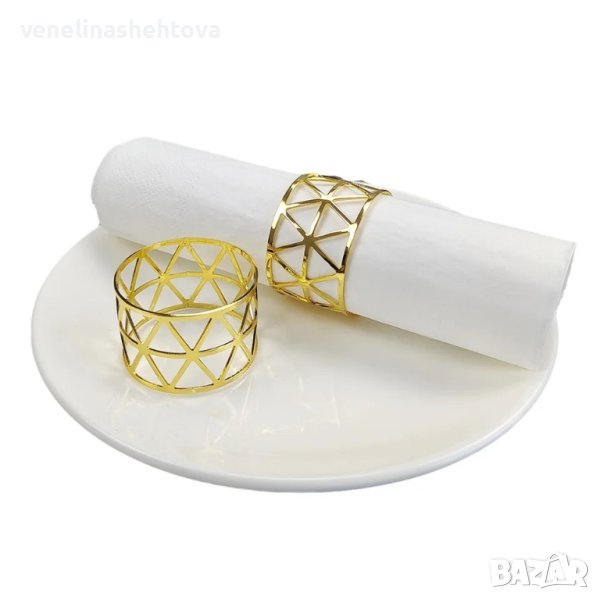 Масивни пръстени за салфетки в златист и цвят, придаващ изискан вид на вашата маса, за тези, които обичат да впечатляват своите гости всеки път. Придайте стил и класа, защото всеки детайл от украсата на вашата маса говори и за вашия характер!