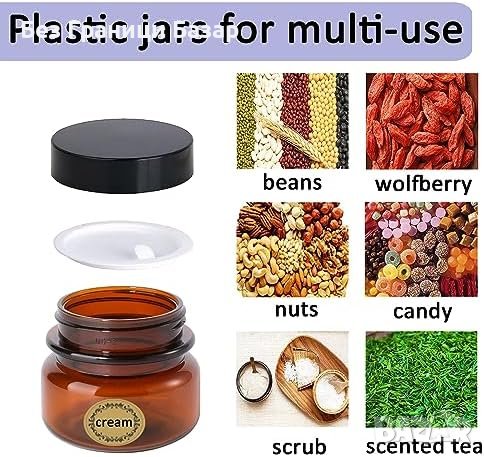 Нови 6 броя x 60мл Пластмасови Буркани Амбър UV Защита Многократна Употреба