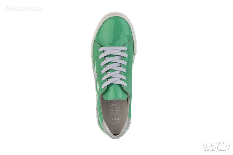 Уникални сникърси на "Индиго". Естествена лачена кожа, сребърни детайли. Цветът е разкошна мента.