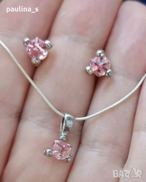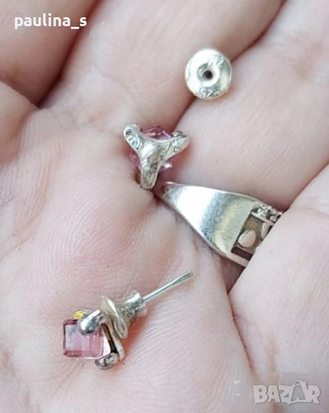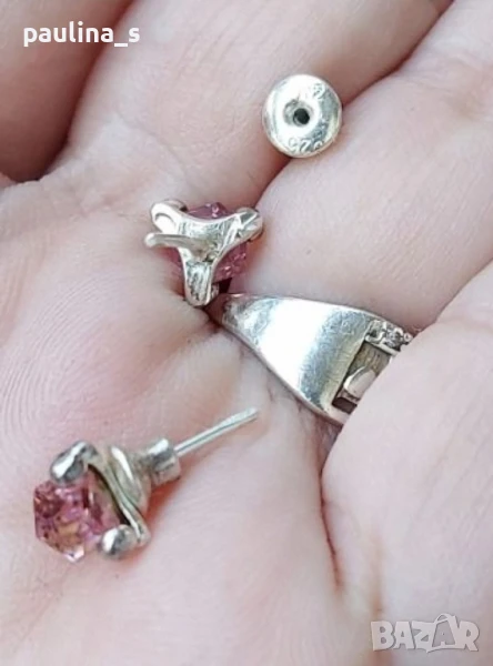 2️⃣. Винтидж / Комплект от маркови бижута с Кунцит / проба 925. Цената е крайна 69,99лв / 35 евро. Комплект от маркови сребърни бижута - NU staff, с Кунцит, с двойна маркировка, с много красиво три точково фиксиране и съответната шлифовка. Камъните менят леко цвета си на светлината. Мащабирането е на дланта, цената не включва синджира. Не се продава на грамаж! Прилагам и скрийншот за сверяване на цените на бижутата.