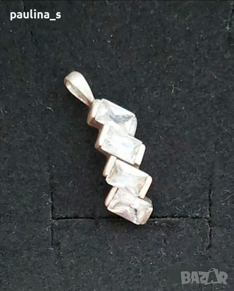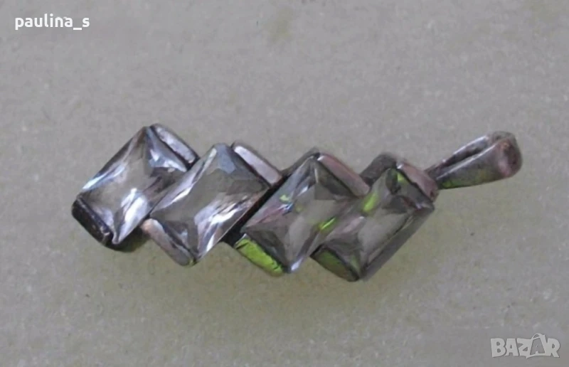 2️⃣. Винтидж! / Масивен сребърен медальон / висулка с прозрачен, бял топаз от СБХ. Цената е крайна без пазарлъци 49,99лв / 25 евро. Масивен педантив / висулка прозвоство на СБХ - България, на повече от 40г. Камъните са 4 на брой, фасетирани прозрачни топази, с размери 6мм/3мм. Без забележки, във вид, с дължина 3,3см. Двойно маркиран, камъните са Прозрачен топаз - багети. Изделието притежава държавна марка/титър/ за съдържанието на благороден метал в сплавта-