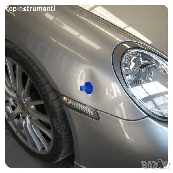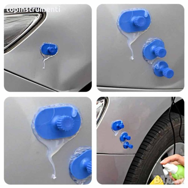 - Комплектът за отстраняване на вдлъбнатини по каросерията ви позволява да постигнете незабавен ефект, като продуктът не оставя никакви следи върху боята.