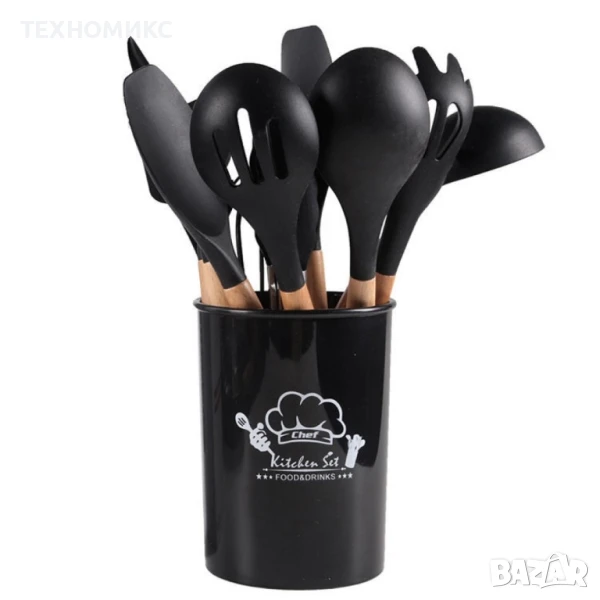 Комплект кухненски прибори 11 бр. в кръгла поставка.