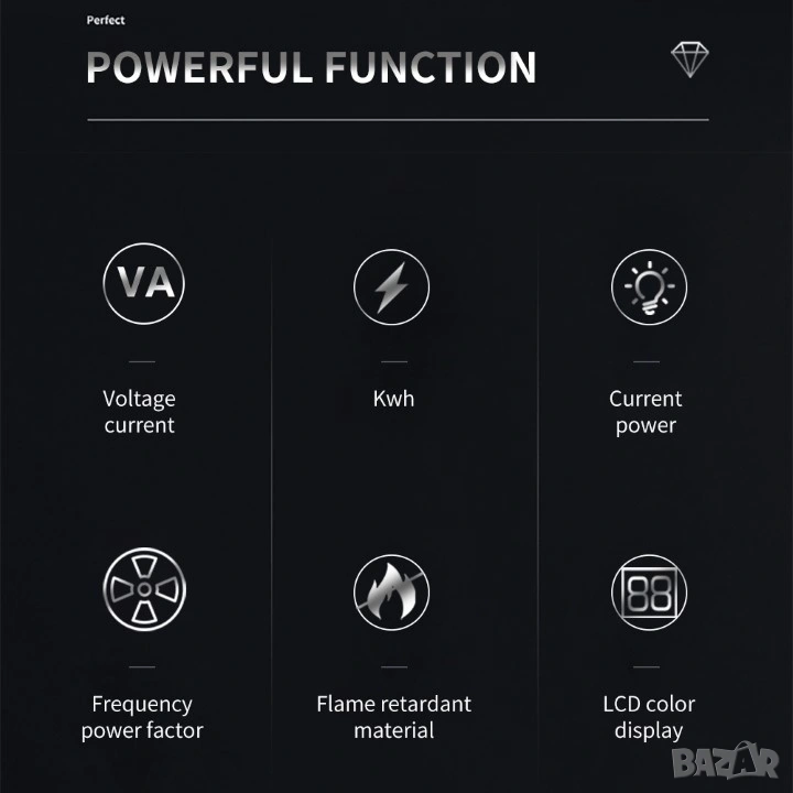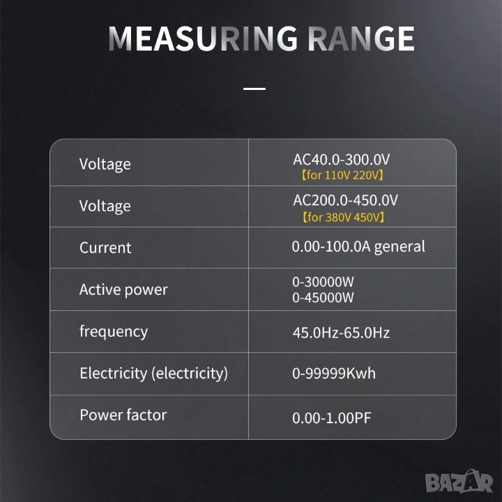 Броячът може да се използва като персонален, контролен електромер. Измерване: моментна консумирана мощност, напрежение, фактор на мощността (cos ф) и ток.