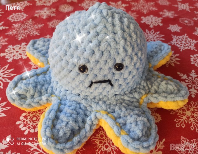 Разрешете на Вашето дете само да Ви покаже своето настроение - от жълтата страна Октоподчето е щастливо, а от другата - сърдито.