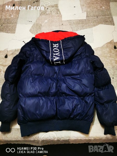 Якето е тъмно синьо на цвят, обличано е само два или три пъти и е подходящо за есенно-зимния сезон.