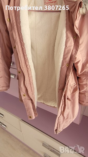 Страхотно топло яке за момиче в бебешко розово.Якето е с много мека бяла вата от вътрешната част.Качулка с пух.Вталено в талията,като по този начин стои много красиво.Закопчава се с копчета и цип.Неразличимо от ново.Купувано от чужбина.Размер 9-10 години