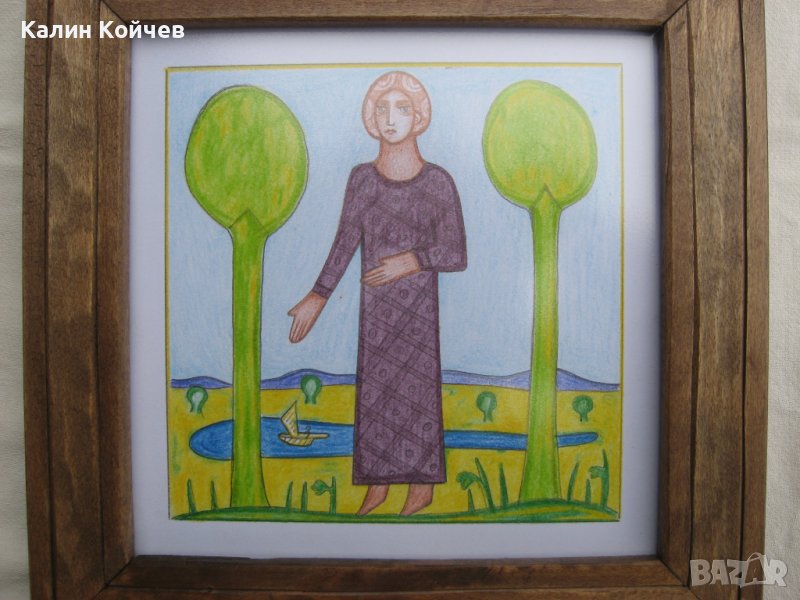 Рисунката е направена 2016г. В дървена (липова) рамка е, зад антирефлекторно стъкло.