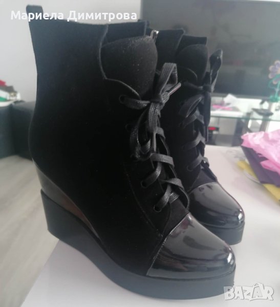 Предлагам дамски боти от естествен велур и лак на българска марка.