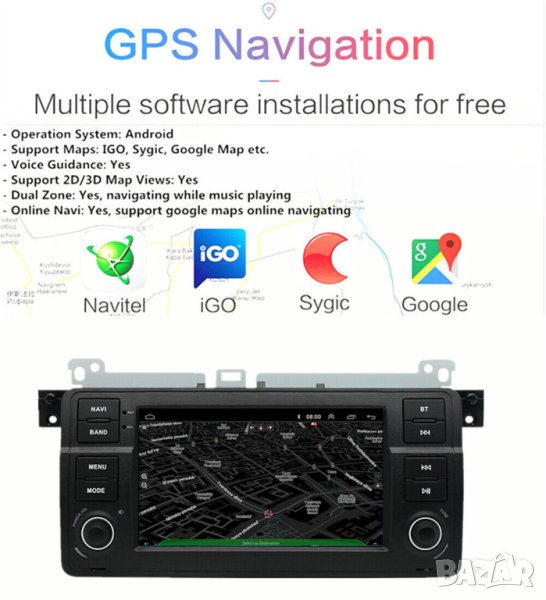 Мултимедия, за BMW E46, 3, Двоен дин, M3, Навигация, плеър, екран Android, 316i, 318, 320, 325, 335