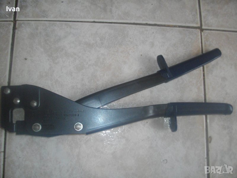 ОПИСАНИИЕ на щанц клещи - 129 лв - за съединяване на профили за гипсокартон и ламарина - макс дебелина на ламарина 0,8 мм. Захват до 1,6 мм - 2 х 0,8 мм. Клещите са почти нови, в отлично техническо/работно състояние. Без забележки. Дължина 340 мм. Тегло 1,5 кг. ПВЦ вложки на дръжките. Материал на инструмента - закалена инструментална стомана. Маркировки по тях - EUR. PAT. PEND. Made in FRANCE.