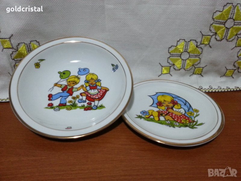 Полски порцелан детски комплект за хранене плитка чиния и дълбока чиния купа без забележки неизползвани сервиз комплект сет лот ретро арт декор винтидж колекция стари антикварни предмети обзавеждане за дома и семейството подходящи за подарък за ценители и колекционери