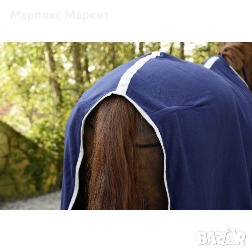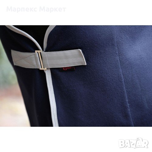 Изтегля потта и далеч от тялото и запазва коня сух. С катарами на гърдите и лента за опашката.