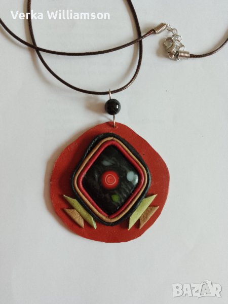 Кафяво колие от кожа модел и фюзинг стъкло модел 77 → Обява 43458842