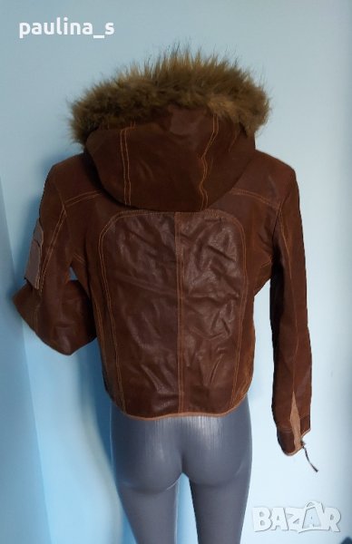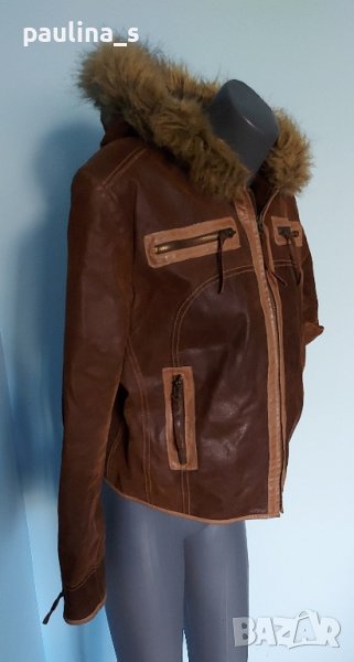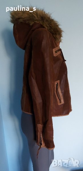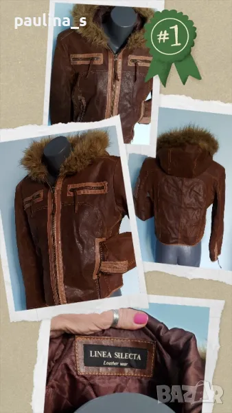 дамско яке от естествен набук с джобове и качулка. Моделът е леко втален, кожата е здрава и дебела, с обработка за блясък, рядка наличност и находка. Качулката е декорирана с артифициална кожа и не се маха. Почиства се с гъба за набук и след изпирана с шампоан или на химическо чистене. Дрехата няма дефекти(скъсано, изпрошнати тегели, всички ципове са метални и работят перфектно), една бройка е с реални снимки.