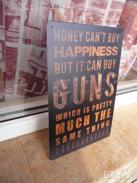 Метална ламаринена табела - Money can't buy Happinnes, but it can buy Guns..