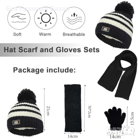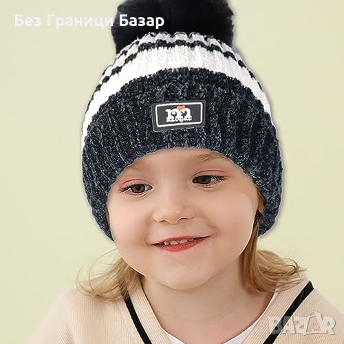 - Дизайн: Атрактивен детски комплект със забавен помпон на шапката, стилни цветови комбинации.