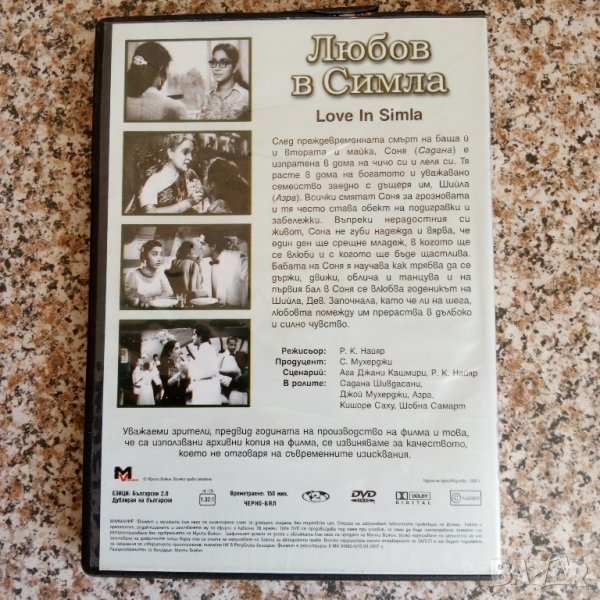 Изпращам по Еконт с 10% отстъпката от цената на таксата за доставка на пратката.DVD класически Индийски филм Любов в СимлаВреметраене на филма 105 мин.