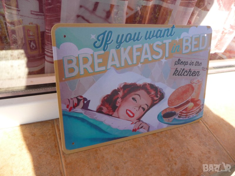 Метална ламаринена табела - Breakfast in bed.