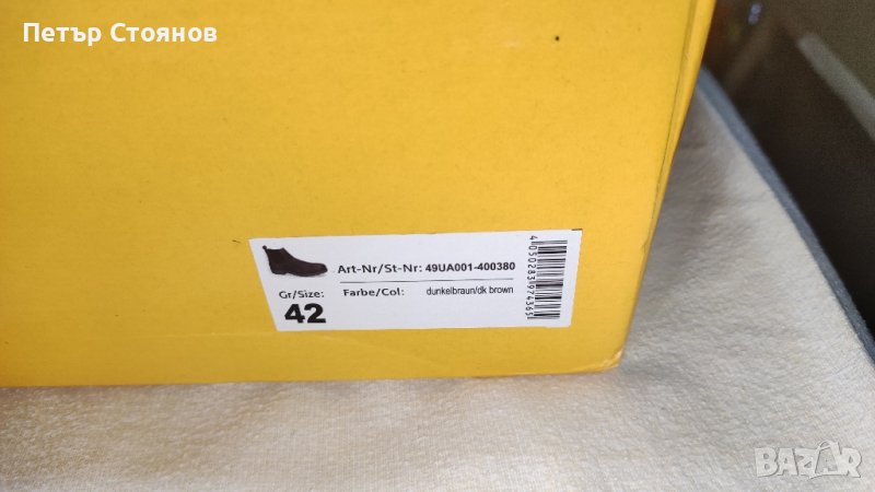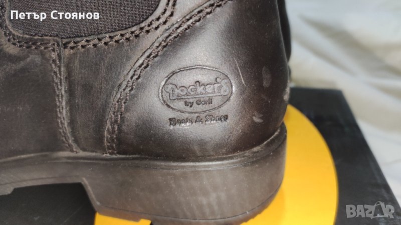 Предлагам чудесни мъжки боти на реномираната немска марка Dockers By Gerill. обувките са чисто нови, в кутия купувани са на разпродажба, като редовната им цена от 69.95 евро. Изработени са от тъмнокафява естествена кожа, хастарът и стелката са комбинация от текстил и еко кожа, подметката е от полиуретан. Нямат връзки, а ластична материя от двете страни на обувката, което ги прави много удобни при обуване или събуване. Дължината на стелката е 27см, височината на тока е 3.5 см, височината на цялата обувка е 16 см. Изпращам с избран от купувача куриер с възможност за преглед и тест.