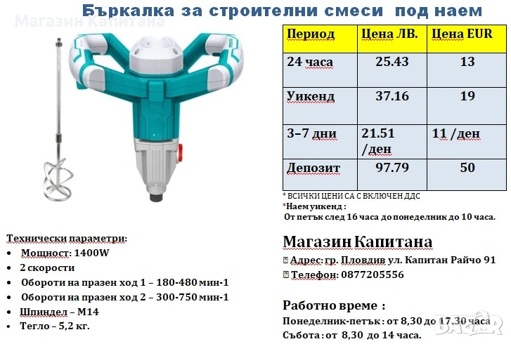Универсален миксер от серия Industrial. Подходящ за гипс, варови разтвори, бои, цимент, лепила, хоросан, мазилка и други. Двете скорости и плавния старт гарантират оптимално смесване на редки и гъсти материали.