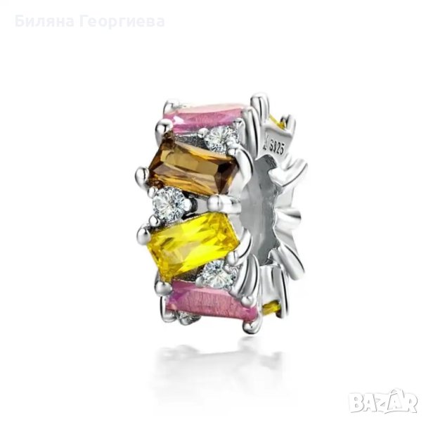 Сребърен талисман за гривна Пандора с цветни кристали