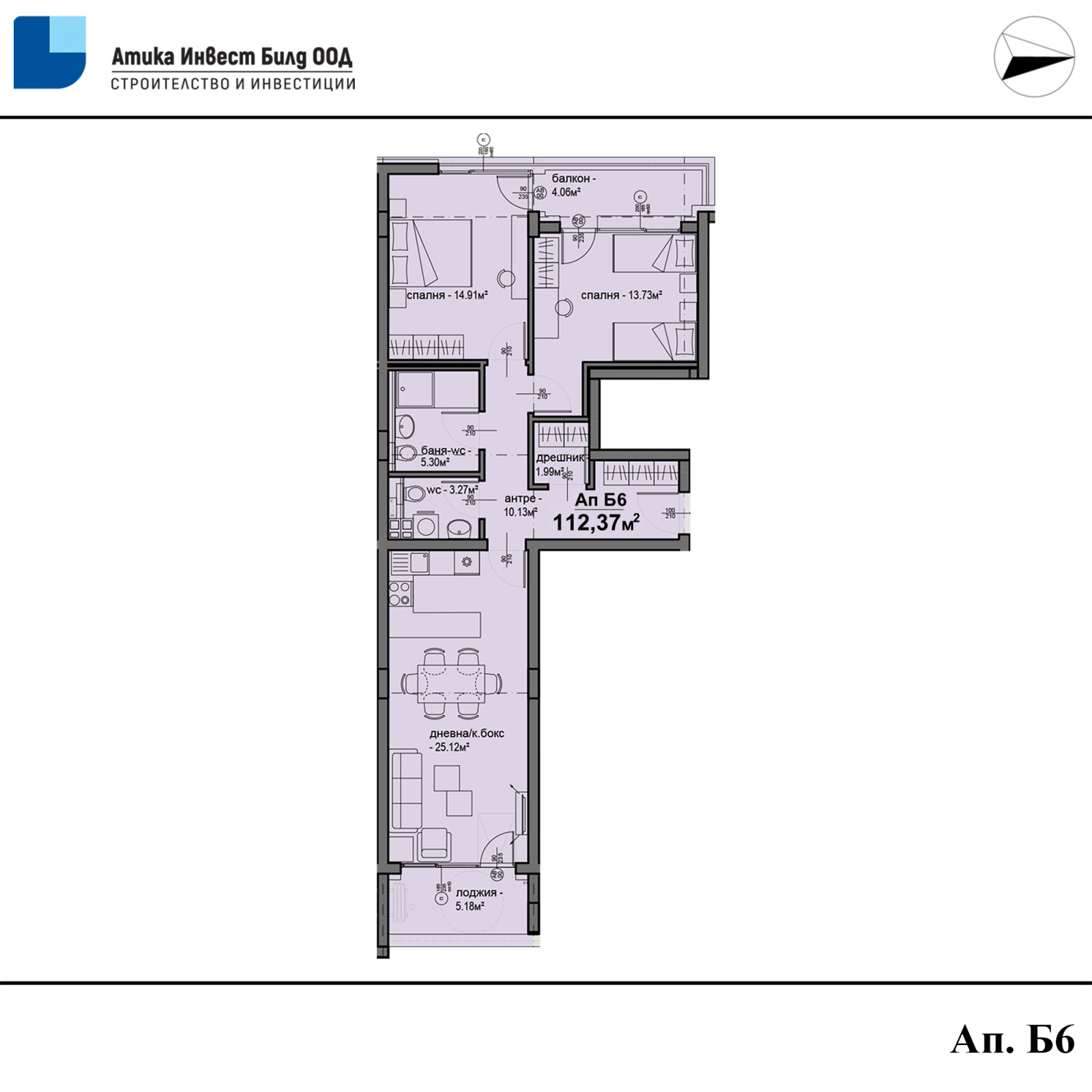 Ап. Б6 - 112,37кв.м - 188 800 евро