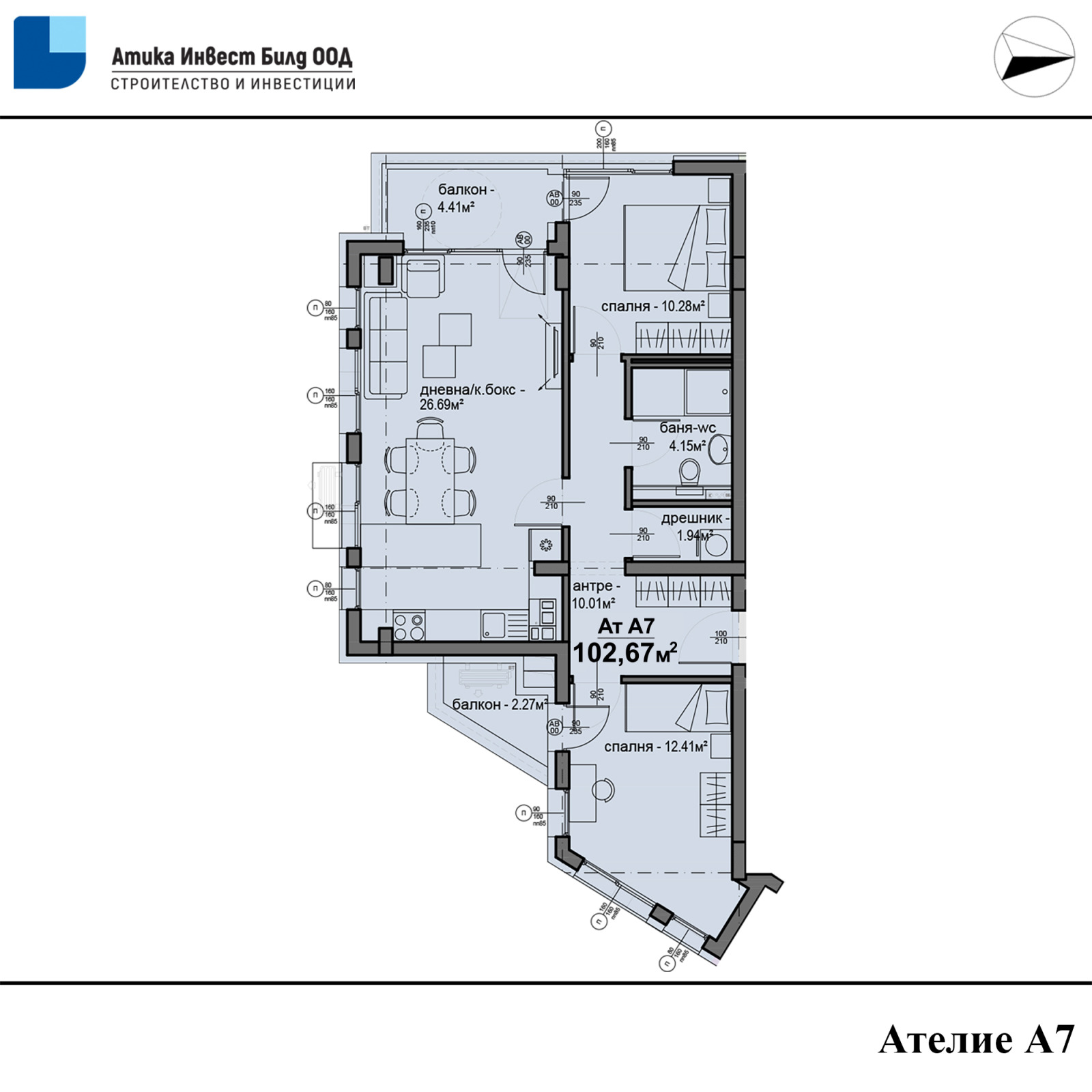 Ат. А7 - 102,67кв.м - 167 500 евро