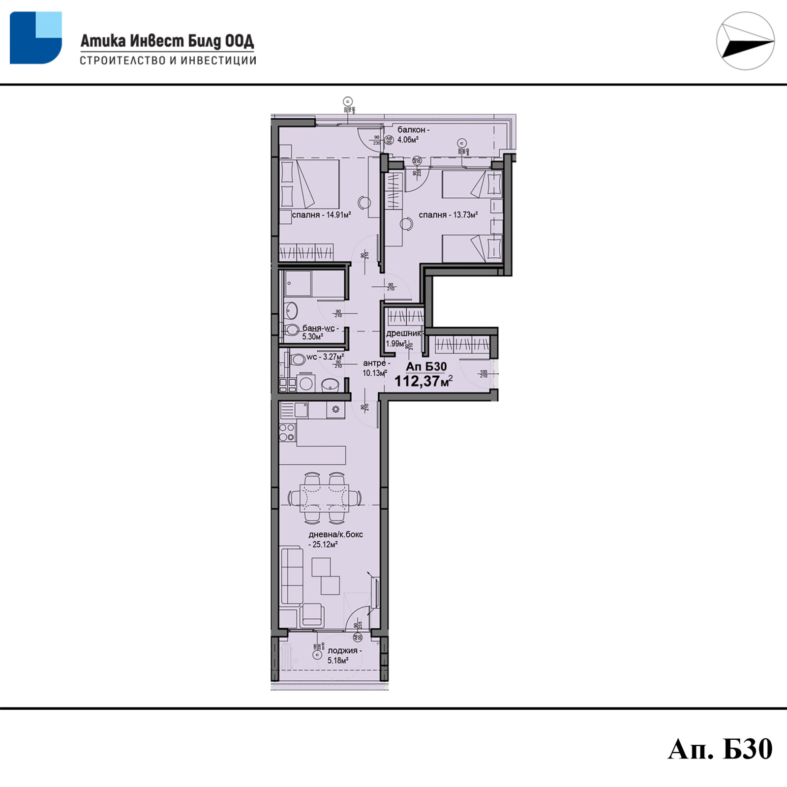 Ап. Б30 - 112,37кв.м - 191 100 евро